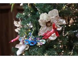 This tree is the perfect recipe to kickstart a party! With decorative flowers, humming birds, and Carnaval ornaments, transport yourself into a festive atmosphere. Keep the party going with sparkling wines from Sparkling Pointe, a sustainably farmed, 40-acre vineyard with classic Champagne grape varieties. Fall in love with their wine and stay warm goodie basket of merchandise, including a blanket, hat, candles, and more.