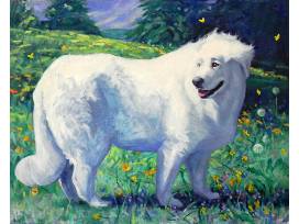 Nationally known for her beautiful effects of light and color, Kathleen Cook paints animal subjects with joy and originality. 16" x 20"