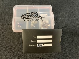 $25 gift card and small box of hand tied flies $85 total value