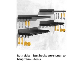 The power tool organizer is perfect for workshop storage. Make your garage and workshop keep roomy space and tidy. Convenient to see various tools and hold or place them. Compatible with pegboards, brick and wooden wall