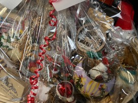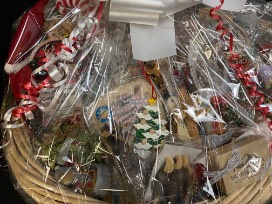Beautiful gift basket filled with Christmas Ornaments and Montana-specific Snacks and Drinks
