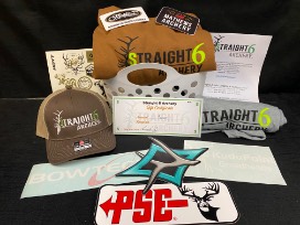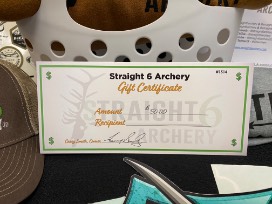 $50 Gift Certificate to Straight 6 Archery, Hoodie, T-shirt, Hat, sticker variety pack.