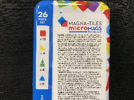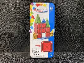 What's Included: 26 microMAGS magnetic tiles, including: 4 Right Triangles, 4 Isosceles Triangles, 6 Equilateral Triangles, 12 Squares. The metal tin packaging provides both convenient storage and baseplate for builds on the go.
