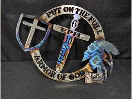 Custom Ephesians 6:10-18 metal wall sign. Includes mounting hardware. Custom made in Stevensville, MT by Chris Childs.