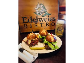 The "Edelweiss Bistro" embraces Bayern Brewing's philosophy to employ sustainable and responsible business practices. The beef and pork used is humanely-raised by local suppliers in Western Montana, free of hormones and antibiotics. Eggs come from local suppliers raising cage-free chickens that are free of growth hormones and antibiotics. Breads, sausages and vegetables are all purchased locally. Imported items from Germany such as pickles, mustards, condiments and seasonings contain no high-fructose corn syrup, artificial colorings or preservatives.