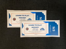 2 x "Learn to Play Hockey" registrations, valued at $75/registration for a total value of $150