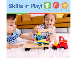 Sturdy wooden vehicle set for hours of loading and unloading fun.