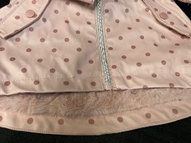 Soft and cozy pink faux fur lining with a polka dot waterproof outside.