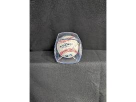 Autographed Major League Baseball by Retired Boston Red Sox Pitcher, Aaron Cook, in case with photograph.