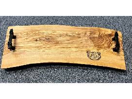 This custom olive wood charcuterie board is engraved with the SPCA Cincinnati 2025 Fur Ball Gala logo.