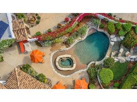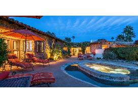 Ultra-luxury vacation home located in central Palm Springs and decorated by renowned interior designer Barclay Butera. This Spanish-style hacienda features 4 bedrooms (each with ensuite bath and walk-in closet) and 5 bathrooms. Villa Butera's lush grounds surround the villa and offer guests numerous outdoor seating areas and amenities: a pool and spa, built-in gas firepit, outdoor lounge chairs and dining areas, and grill. Ideally located in the Historic Movie Colony and 5 minutes to downtown. Sleeps 10.
