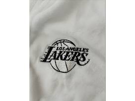 - Los Angeles Lakers Bathrobe. White Robe & Black Lakers Emblem. By Terrytown. One Size.