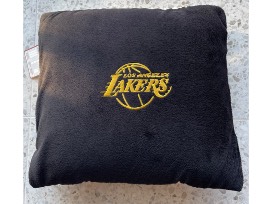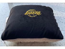 - Lakers fan can snuggle with this super soft sherpa throw blanket. Lambswool microsherpa throw and pillow. Blanket folds into a pillow. Embroidered Lakers logo. Zipper closure. Dimension 50"x 60" when unfolded. Approx 14"x 14" in pillow form.