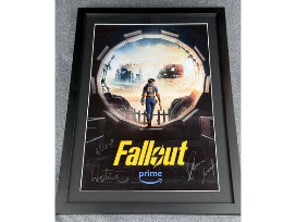 Enjoy this framed poster from the hit Prime TV Show Fallout signed by top cast members Walton Goggins, Ella Purnell and Aaron Moten!