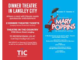 Enjoy a magical evening of theatre with two tickets to see the beloved classic, Mary Poppins! Be swept away by the enchanting story, incredible music, and captivating performances. Your experience includes a delightful dinner, making it the perfect night out for you and a guest.