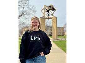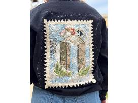 Carry a piece of campus with you wherever you go. This one-of-a-kind custom sweatshirt, handmade by student Vanessa Hoehl, '26, features a beautifully stitched fabric panel on the back depicting the iconic bell tower-a beloved symbol of faith, tradition, and life on campus.