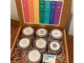 Shop our classic scents available in a 10oz glass tumbler or a 4oz travel tin. Each candle in our 23-candle collection features its own hand-drawn mandala artwork, custom-blended scent and carefully selected crystals to create a layering of goodness.