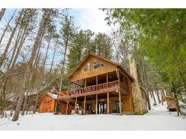 Escape to nature and enjoy the perfect blend of rustic charm with modern amenities at our beautiful log cabin. Nestled in the mountains of Deep Creek Lake, this stunning property is the perfect vacation. The open living and dining area boasts ample space to spread out and relax. Enjoy the warmth of the fireplace or gather around the dining table. The fully equipped galley kitchen has everything you need. Sleeping arrangements include two inviting bedrooms, both with queen beds while one is outfitted to sleep two additional children comfortably. The spacious deck is the perfect spot to enjoy the scenic mountain views while sipping your morning coffee or soaking up the sunshine. The hot tub is your ultimate relaxation. Located in the Sky Valley community you have access to a dock slip (with fee), a catch and release pond, and a community playground and park. Just a short drive from popular area attractions around Deep Creek Lake, Wisp Ski Resort, and the charming town of Oakland.