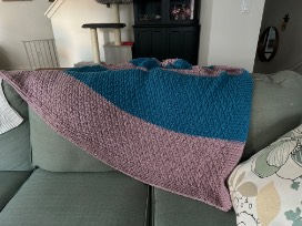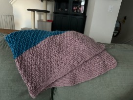 Snuggle up with this beautiful pink and blue blanket hand-knit by midwife and former PAC Chair, Claire Harper.