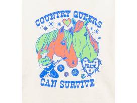 It takes fortitude to survive and thrive as a queer person in rural America. Show your strength (and style!) with this "Country Queers Can Survive" Cropped Tee. Unisex, Size Medium. Designed and printed by a WV small business, Kin Ship Goods.