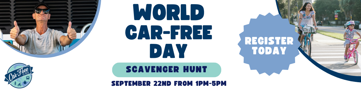 Celebrate World Car-Free Day with us by joining us on an Amazing Race style scavenger hunt around Downtown St. Pete! The catch? You have to go #CarFreeStPete, whether that be using scooters, bikes, riding the bus, or walking!