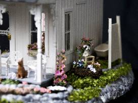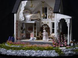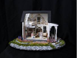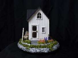 1Look at that detail! Get your hands on this one of a kind, handmade miniature house model. This miniature dollhouse was hand crafted by a nationally renowned artist whose work is displayed in several museums. It measures 9" wide by 5.75" high. Take-in the astonishing detail of an absolutely charming cottage and domestic scene - a true work of art to treasure. Perfect décor for your home and sure to be a conversation starter!