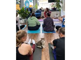 Grab up to 8 friends for a private yoga session at Paws and Claws-no experience needed! Whether cats are sprinting between mats or curling up on yours, it's equal parts zen, relaxation, and amusement.