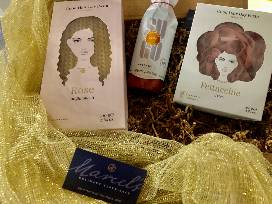 A fun Italian package from Marcel's of Glen Ellyn. Good Hair Day pasta and an imported Vodka Sauce. That pasta is really cute and unique. Along with an Italian kitchen towel. This pasta is Handcrafted in Italy with only the finest 100% Wheat Semolina from the Umbria Region. Plus, pasta does help with hair growth!