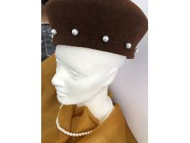 Enjoy this one-of-a-kind beret accented with pearls. It is made of fur felt and is adjustable. Kathleen the designer at Brim and Dash creates one-of-a-kind hats. This one has been specially created for the Soaring Eagle Gala! You will be the only one to have it! Truly an original!