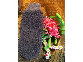 From the Boutique Whimsy in Frankfort and Morris comes this soft and lovely combination in gray. Warm and cozy ear muffs and fuzzy, furry mittens. Plus, a gray zipper wallet and textured scarf. A comfy and cozy package!