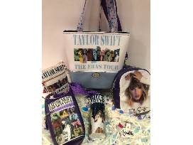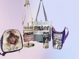 Stylish, yet functional is this 6 pc. Taylor Swift* inspired set. It includes a tote with Taylor inspired graphics on both sides and a magnetic closure. Also, a Taylor sling crossbody bag, a phone pouch to accommodate any size phone (also holds credit cards and ID). Plus, a great water bottle holder. It holds even the largest bottles. Last, but not least a bonus, reuseable water bottle and "Swiftie key tag". All items are lined with waterproof canvas. *Not official merchandise. Hand crafted and generously donated by a SEA parent.