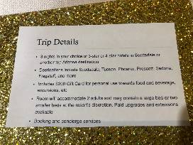Experience 3 nights for 2 in beautiful, sunny Scottsdale Arizona or another Arizona city of your choice. Plus, a $200 Visa gift card for food and beverage. Examples of your choices: Scottsdale Camelback Resort, Adero Scottsdale Autograph Collection, Hilton Sedona Summit and Legacy Golf Resort-plus, so many more! What a package!