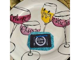 Enjoy this nice package from Rosemary and Jeans restaurant in Lombard. Enjoy lunch, ($25 gift card) a bottle of wine from their vast selection of wines! Head to Head Rose' and this lovely Italian Serving platter by Rosanna! As the platter says Salute, Cheers, Cin Cin, and Votre Sante! Enjoy!