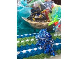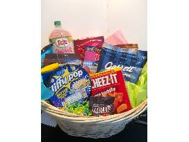 A beautiful and warm custom afghan handcrafted especially for Soaring Eagle in the school colors! It is soft and lovely the size is 4ft.x 5ft. It is large and so comforting-time to snuggle in Soaring Eagle style! Plus, a basket of snacks to enjoy while lounging!