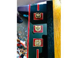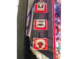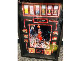 A true treasure - a shadow box collage with 6 replica tickets and Championship rings for all 6 winning seasons! Includes an iconic photo of a Jordan jump shot! What a piece for your office or study!