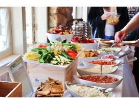 Includes: catered cocktail party for 20 guests OR dinner for 8 guests.