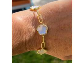 Material: The bracelet is crafted from solid 925 sterling silver and overlaid with yellow gold to ensure durability and a luxurious finish. Each mother-of-pearl shell piece is carefully selected for its quality and brilliance. The bracelet measures 6.5 inches and fits most wrists. Hypoallergenic.