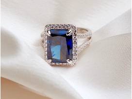 Material: The ring is crafted from solid 925 sterling silver and overlaid with platinum to ensure durability and a luxurious finish. Each lab-grown sapphire and simulated diamond micro-pave detailing is carefully selected for its quality and brilliance. The ring is hypoallergenic, ensuring comfort for daily wear. Size 7 fits most.