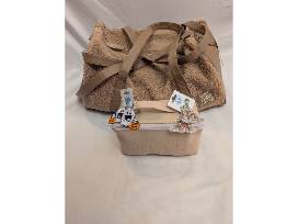 Complete with a happy pink sweater adorned with 3-D flowers, a lovely beaded headband, a bow hair clip, and a Grinch Christmas freshie. Throw in the Tan Sherpa Weekender from The Carrington Collection and you're ready for a fun time!