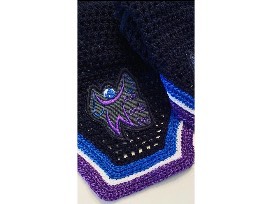 Deck your horse out in the finest JustWorld bonnet and cooler! The Talisman black fly bonnet is handcrafted and outlined in JustWorld's colors: blue, purple, and white. The JustWorld logo is prominetly placed in the middle of the bonnet.