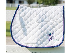 The Rambo Grand Prix Show Jumping Saddle pad by Horseware Ireland looks like a traditional square quilted pad, with a poly-cotton blend shell and pretty cord trim, but look closer, and you'll find that it's lined with a moisture-wicking waffle weave fabric and has grippy rubberized panels right under where your saddle sits.