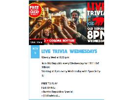 Redeemable at: The Village Squire, Alexanders Cafe, Rookies, or Old Republic.