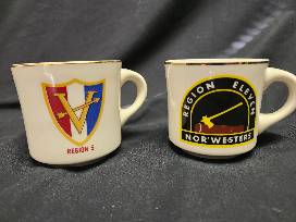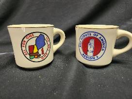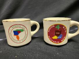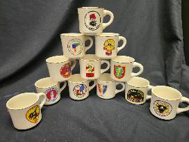 Lot of 12 vintage Boy Scouts of America mugs. Each collectible mug represents a different previous region of the BSA, ranging from Region 1 to Region 12.