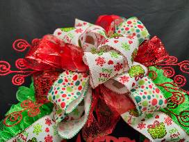 Bright red glitter, polka dot and special Grinch ribbon bow for the Grinch aesthetic.