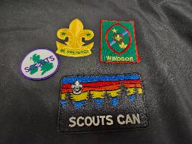 Includes Scouts Canada patch, Scouts Windsor patch, Scouts England patch, and Scouts Europe patch