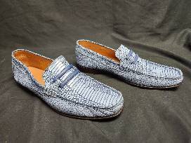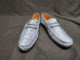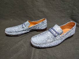 Madden Men's light blue snake pattern leather loafers made in Italy.