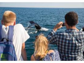You and a guest will set sail for a whale watch experience of a lifetime! During the a 3.5 - 4 hour cruise you may see a variety of magnificent mammals including humpbacks, finbacks, minkes, and dolphins.