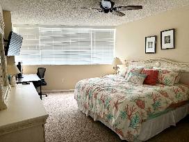 This Marco Island condo apartment is located right on the beach, and has nice views of the Gulf of Mexico and beach from a private 2nd floor balcony, 2 full baths, generous walk-in closets in both of the 2 bedrooms, fully equipped kitchen with Keurig, dishwasher, stove, microwave, toaster, gas grill, French door fridge, WiFi, cable, movie channels, washing machine/dryer, and covered/assigned parking spot. It's within walking distance of lots of shops and restaurants.
