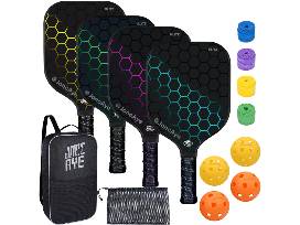 - JoncAye pickleball set - 4 fiberglass pickleball paddles, 2 outdoor + 2 indoor pickleballs, 4 pickleball lead tapes and 1 pickleball bag