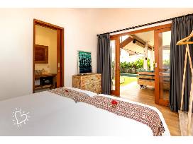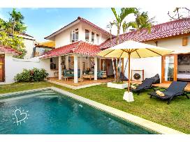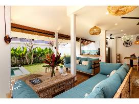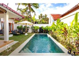 -- Private Villa: Enjoy a spacious 2-bedroom, 2-bathroom villa with a private pool shaded by lush palms and a tranquil, walled tropical garden.